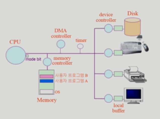 ex) CPU가 사용자 프로그램에게 넘어갈때 mode bit 1, Interrupt나 Exception 발생시 하드웨어가 mode bit 0으로 바꿈