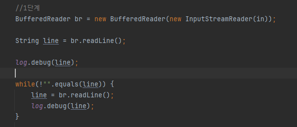 BufferedReader.readLine() 메소드를 활용해 라인별로 HTTP 요청 정보를 읽는다.