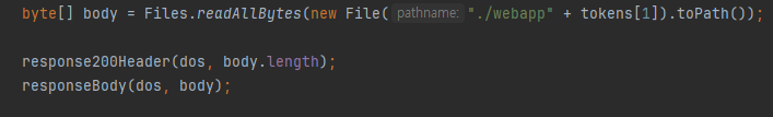 자 여기서 Files 객체의 readAllBytes를 통해 new File이란 객체를 만든다음 현재 위치에서 "./webapp" + 우리가 얻은 URL" 을 하면됩니다.
