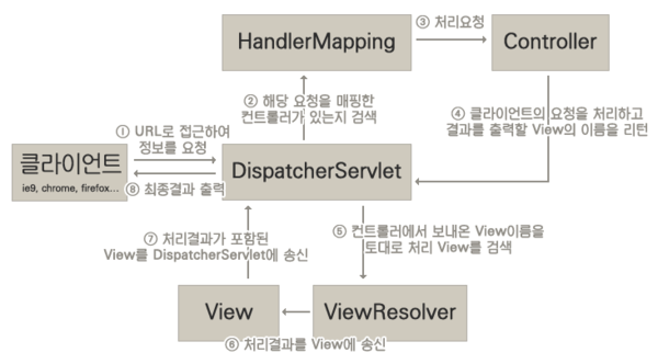 ViewResolver가 찾은 View화면을 View로 보내주면 View는 처리 결과를 DispatcherServlet에 보내고, DispathcerServlet은 클라이언트에게 최종 결과를 보내줍니다.