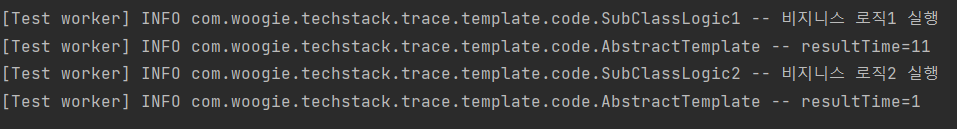 템플릿 메서드 패턴을 적용함으로써 핵심 로직과 보조 로직의 모듈화가 되어있는것을 지켜볼수있다.