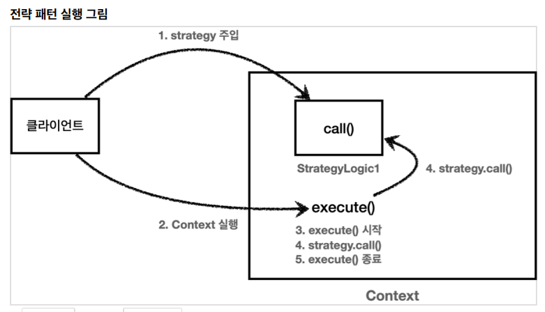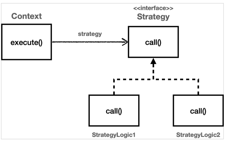 //쉽게 이야기하자면 컨텍스트는 크게 변하지 않지만, 그 문맥 속에서 'strategy'를 통해 일부 전략이 변경된다 생각하면 된다.